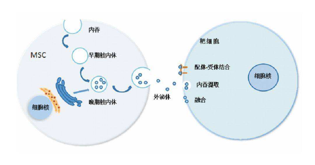 外泌體是細胞主動向外界環境中分泌的納米囊泡結構,通常直徑為30-100nm,含有蛋白質、脂質、mRNA等生物活性物質。外泌體一旦通過胞吐作用從干細胞中釋放,復雜的混合因子能作為信號分子傳遞給其他細胞,從而改變其他細胞的功能。